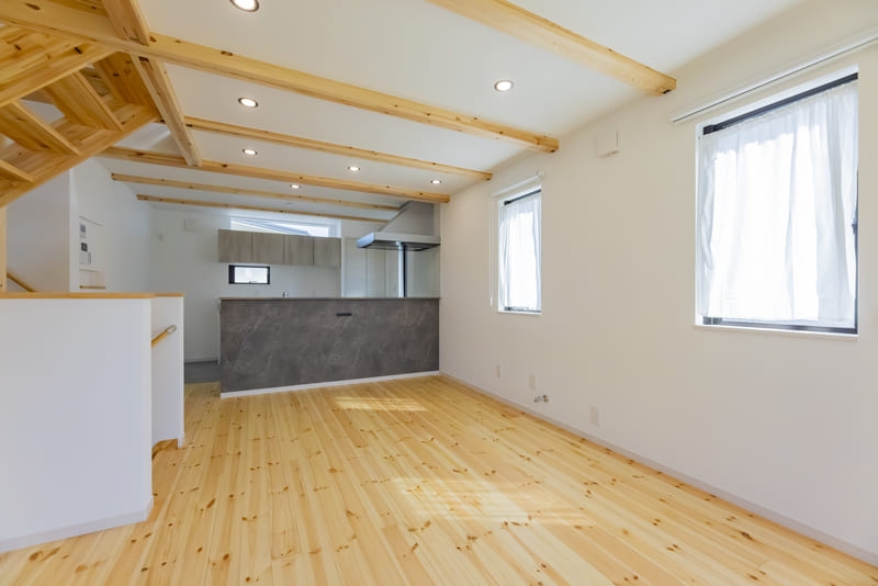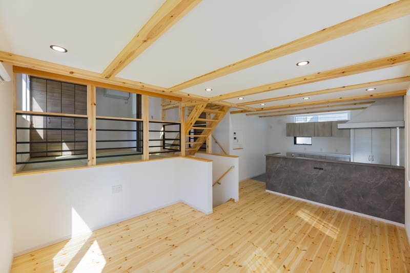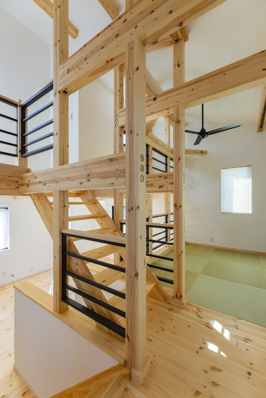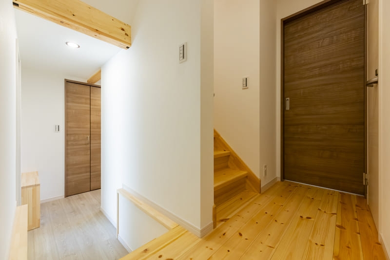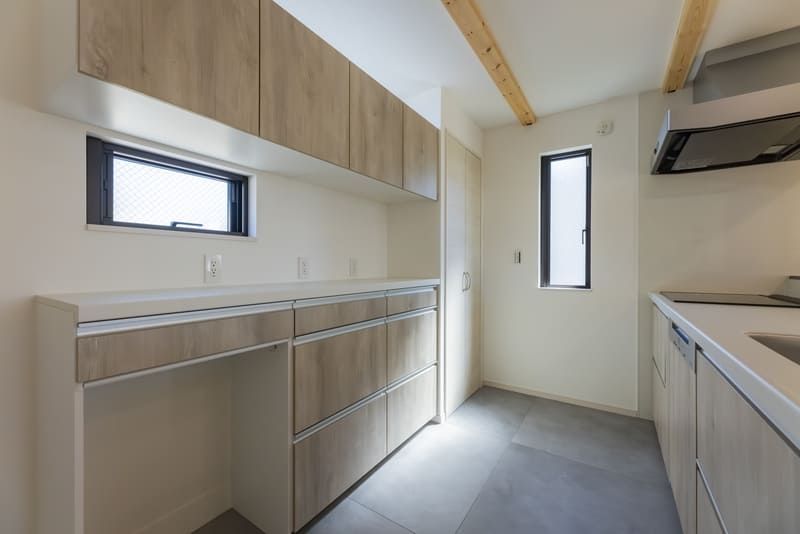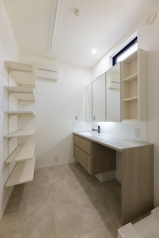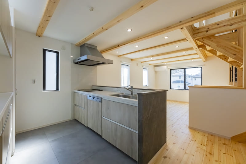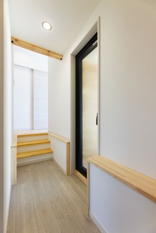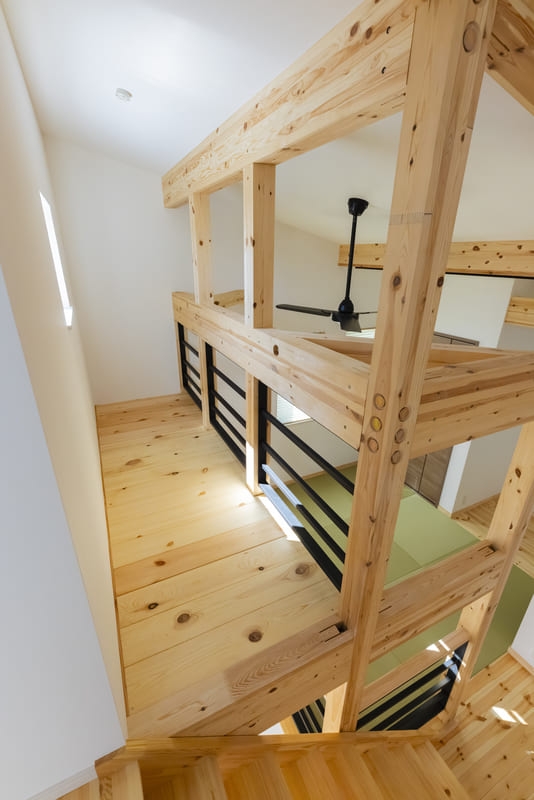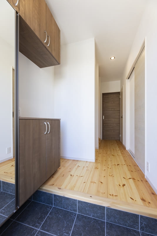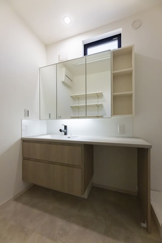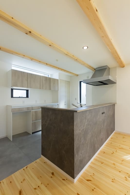 落ち着いたモスグリーンの外観が、周囲の自然や街並みに美しく馴染む住まい。玄関まわりの収納力を高める屋外ストッカー、日常に癒しを与える屋上空間。プライベート性と非日常感を両立させた、心地よい暮らしを叶える住まいとなりました。