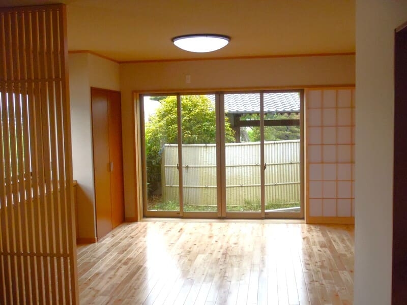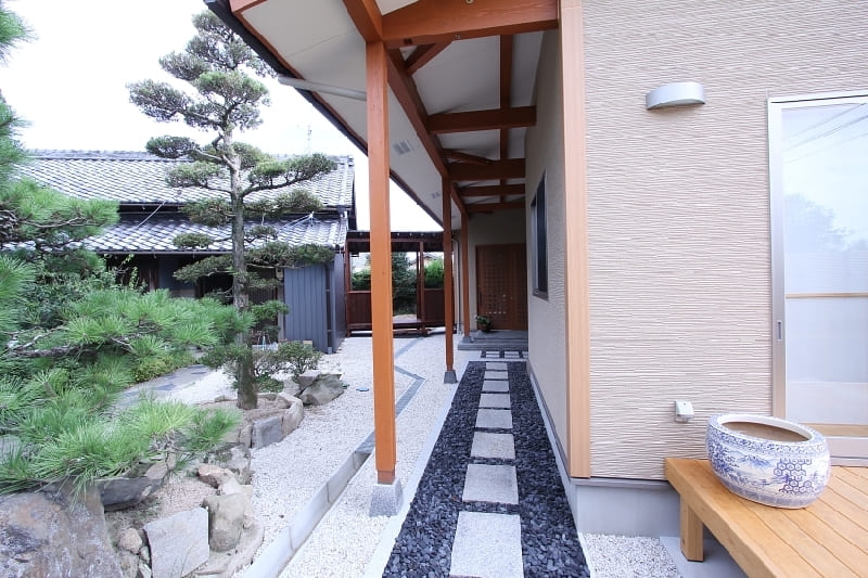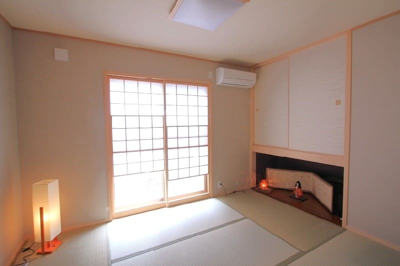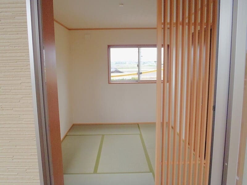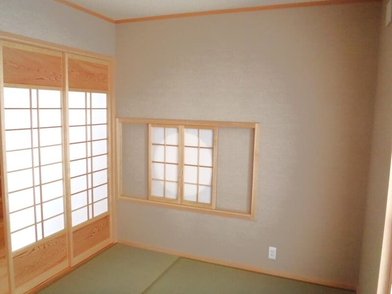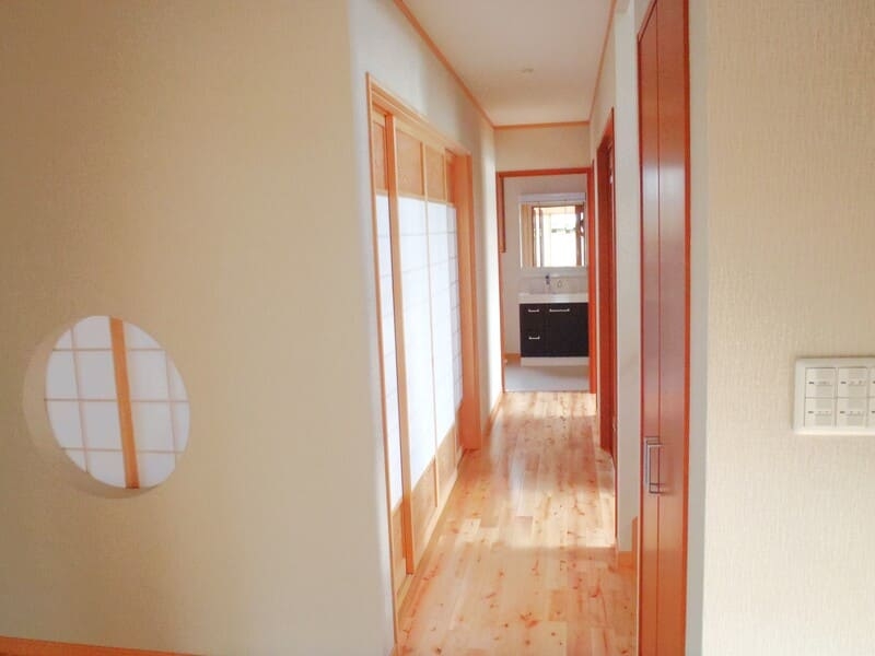 丸窓の向こう側には和室が広がり、障子や畳の質感と相まって、どこか懐かしくも洗練された景色を演出。玄関ホールと和室をゆるやかにつなぐことで、空間同士が視覚的に呼応し、家全体に一体感が生まれます。