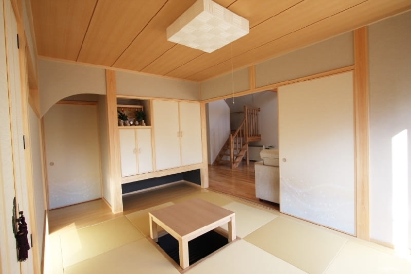 隣接する和室は引き違い戸で仕切られており、普段はリビングと一体感のある広々とした空間として、来客時や個室としても使える便利な間取り。家族の暮らし方やシーンに合わせて柔軟に活用できます。