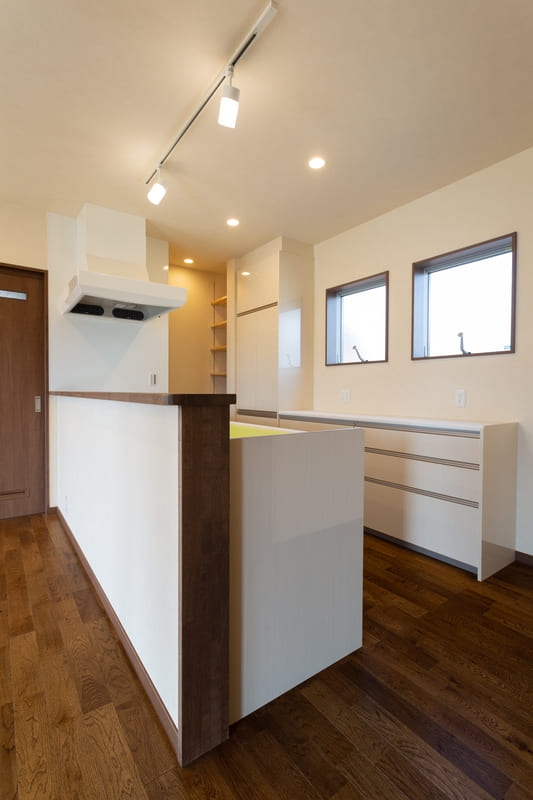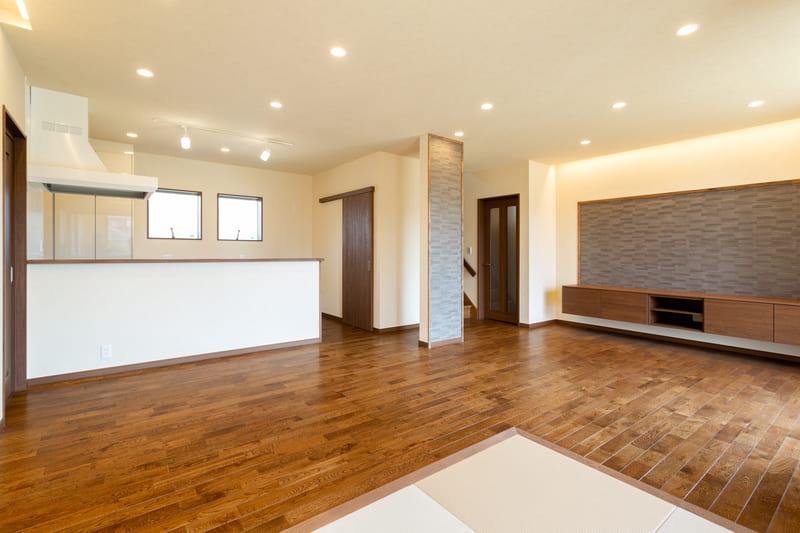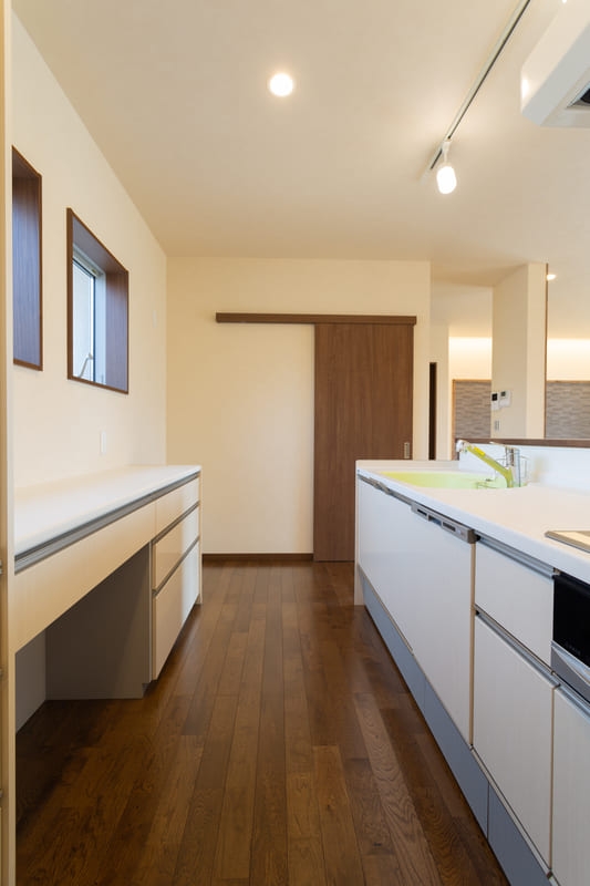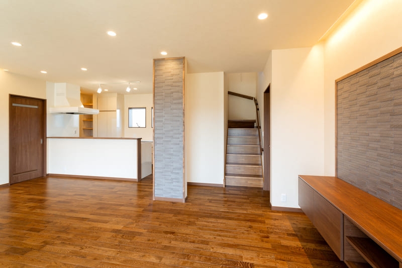 リビングには間接照明を採用し、天井や壁をやさしく照らすことで、空間全体に奥行きとやわらかな陰影を生み出しています。昼間とは違った表情を楽しめ、夜はほっと気持ちがゆるむような、くつろぎの時間を演出。家族が自然と集まりたくなる、温かみのあるリビングに仕上がりました。